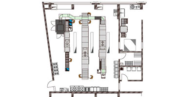 Das hier abgebildete Beispiel zeigt die Anlage für 800 bis 1.200 Essen in einer Werkskantine.
