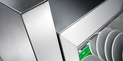 Maschine und Innenteile sind aus wertbeständigem Chromnickelstahl. Alle Funktionsteile sind von der Frontseite aus zugänglich und einfach austauschbar.