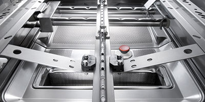 Maschine und Innenteile sind aus wertbeständigem Chromnickelstahl. Alle Funktionsteile sind von der Frontseite aus zugänglich und einfach austauschbar.